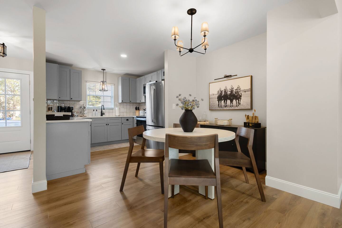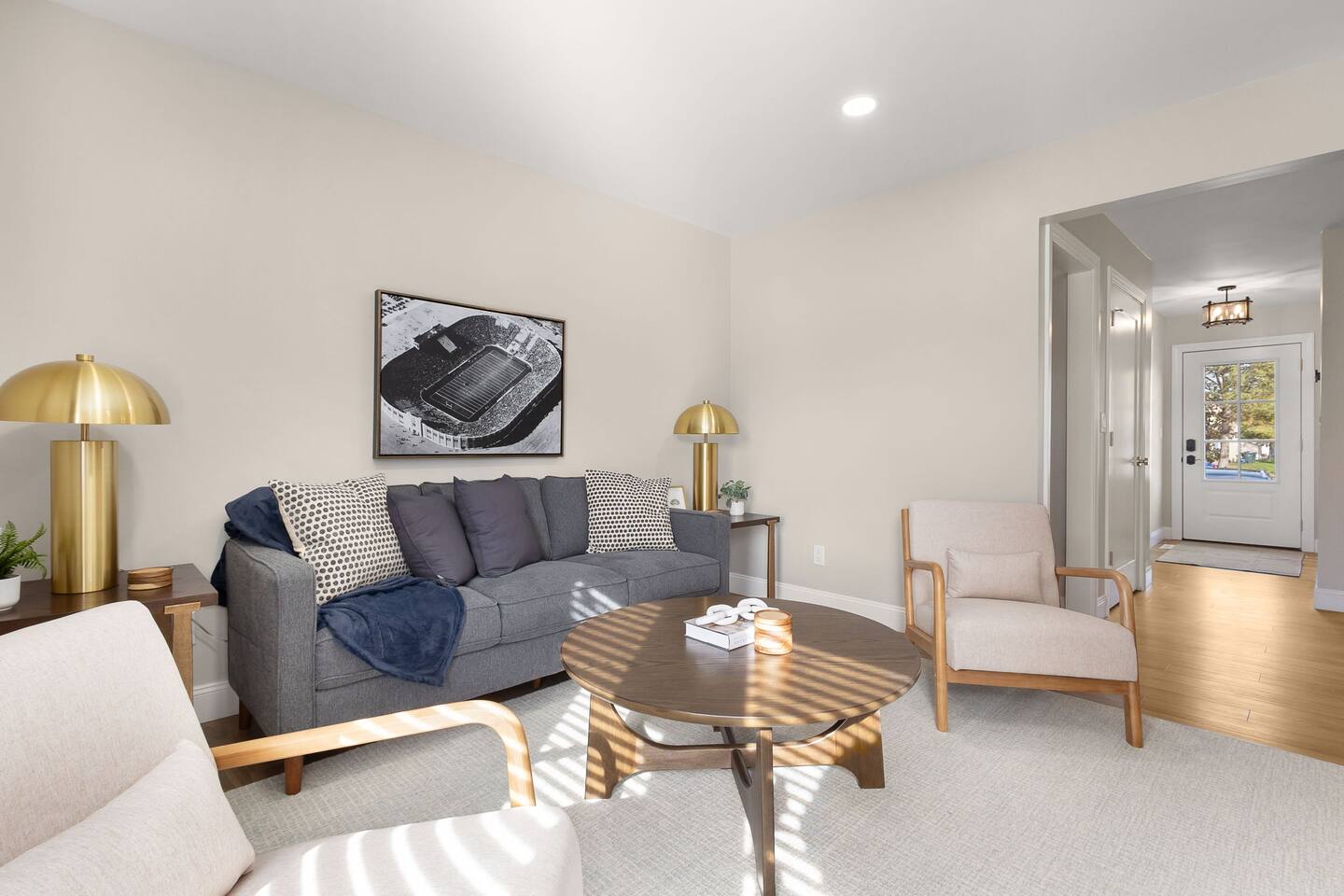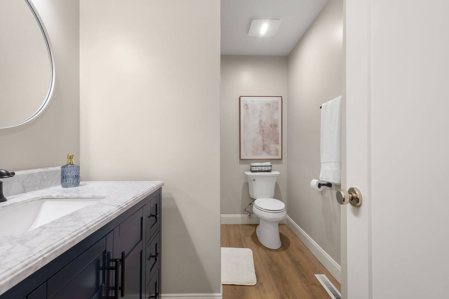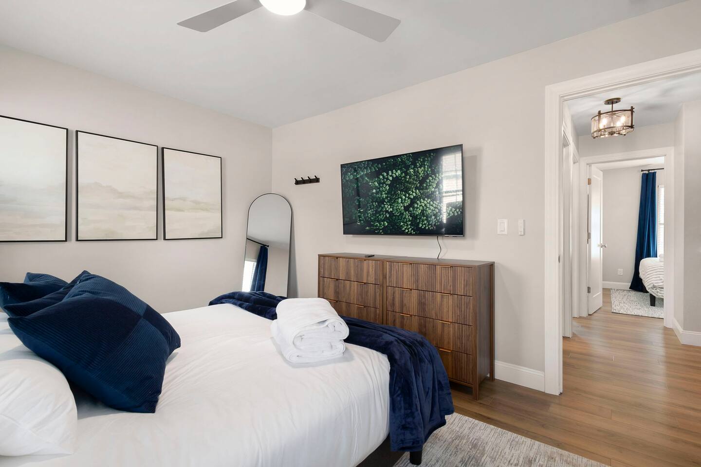 WHY YOU’LL LOVE GOLD GLORY TODAY! (Besides everything being new…) This THREE-level townhome has 3 bedrooms upstairs and 2 downstairs, each with queen beds, clean designs, and thoughtful touches: makeup towels, Puracy body wash/shampoo/conditioner, hair dryer, and clothes steamer. BATHROOMS Three bathrooms: half bath on the main level, 3/4 bath upstairs, full bath downstairs. Sleek tile backsplashes, modern minimalist design, and an open, airy feel. Primary shower upstairs has a clear glass door—spa vibes included. KITCHEN Fully stocked with everything you need: pots, pans, plates, glasses, utensils, and appliances. Coffee lovers rejoice—drip coffee, single-serve Keurig, coffee, sugar, and creamer ready for your morning. LIVING ROOM Open concept for togetherness—chat with friends in the kitchen, at the table, or while streaming content on the smart TV. Board games included… and yes, you might question your spouse’s competitive streak. BACKYARD Green space perfect for grilling or a game of cornhole (“Bags” for the Minnesotans!). Solid American-made boards, resin Adirondack chairs, and camping chairs for easy gathering. LOCATION Just 1.5 miles from the buzzing University of Notre Dame area—shops, cafes, eateries, and campus. Football game, visit, or convention? Century Center is 5 minutes away. Need downtime? Take a stroll on the scenic Riverwalk. NEIGHBORHOOD Conveniently central, which means you may hear traffic during peak hours—It’s all part of the vibrant atmosphere that comes with being in such a central location! Thanks for checking out Gold Glory! We look forward to welcoming you and your crew.