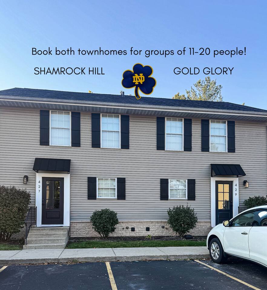 Ideal for game days, graduation, reunions, conventions, or business trips! 5 bdrms | 3 bath | Sleeps 10. Modern amenities, stylish decor, and cozy vibes make it easy to relax. Close to ND campus, downtown, and restaurants (1.5 miles). Traveling with a larger group? Shamrock Hill next door has you covered. Another townhome with 5 bedrooms.